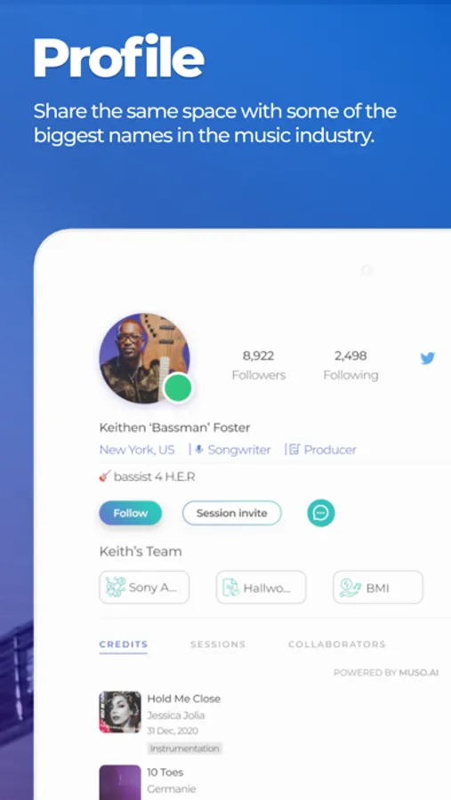 With unlimited sessions available, you can jam with others online or meet up in person for a live session. Plus, with our Muso.AI integration, you can list all of your credits and showcase your skills on your Session House profile in just a few clicks. So why wait? Join the Session House community today and start creating your next masterpiece!