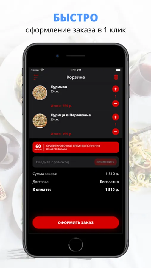 Скачивайте наше приложение, оформляйте заказ и наслаждайтесь любимой едой, где бы Вы ни были! Приятного аппетита!