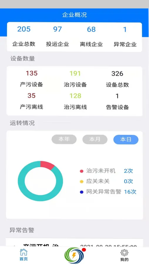用电企业用于查看本企业的设备运行状态以及设备告警信息。
