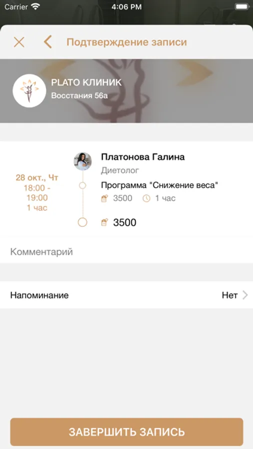 Официальное мобильное приложение центра по коррекции фигуры «PLATO КЛИНИК».