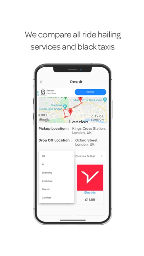 Compare all the price estimates of the ride hailing services available in your area.