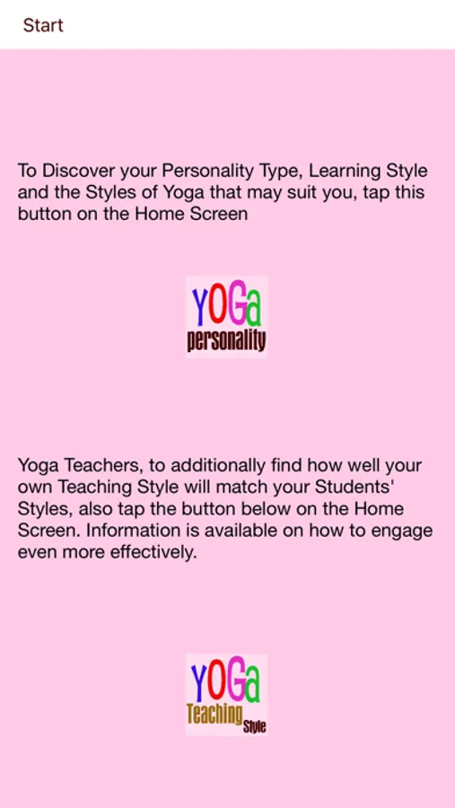 It additionally offers Yoga Teachers and Coaches insights to how they might want to vary their Teaching Styles when teaching different personalities. Yoga Teachers and Coaches can use the app with their current and potential students to understand students’ Learning Style preferences.