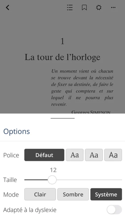 Ajouter des signets, modifiez la taille du texte et la police (dont une police spéciale dyslexique) et passez facilement du mode jour au mode nuit pour un meilleur confort de lecture.