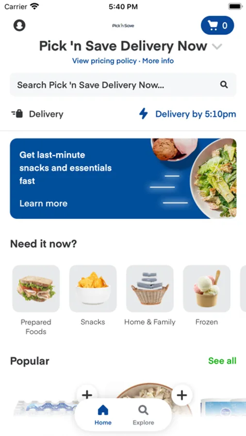Woke up and realized you didn't have coffee? Sat down for the big game to find you don't have any chips & salsa? Forgot eggs for your dinner recipe? Now you can get all this and more delivered with the Pick 'n Save Delivery Now app in as little as 30 minutes.