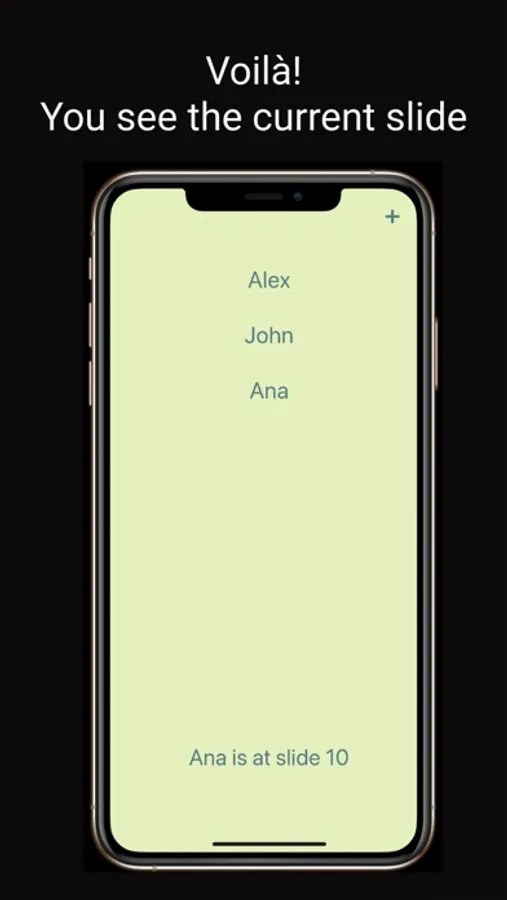 You already know from your agenda which presenter is next in line. Just select the presenter name on screen and please switch the slides remotely for them, according to the slide number shown by our app. Just don’t send your iPhone into sleep mode by pressing once the On/Off button. Don’t worry, it will not enter by itself sleep mode while our app is in the foreground.