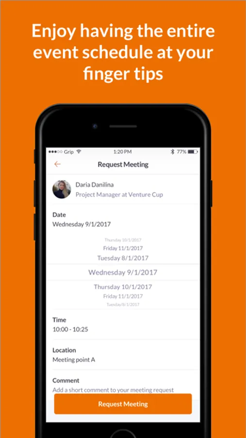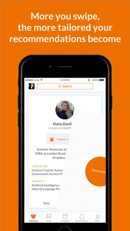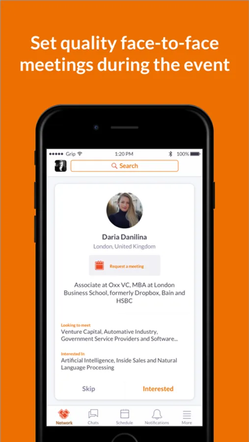 - View recommendations, send messages and arrange meetings / network with other visitors