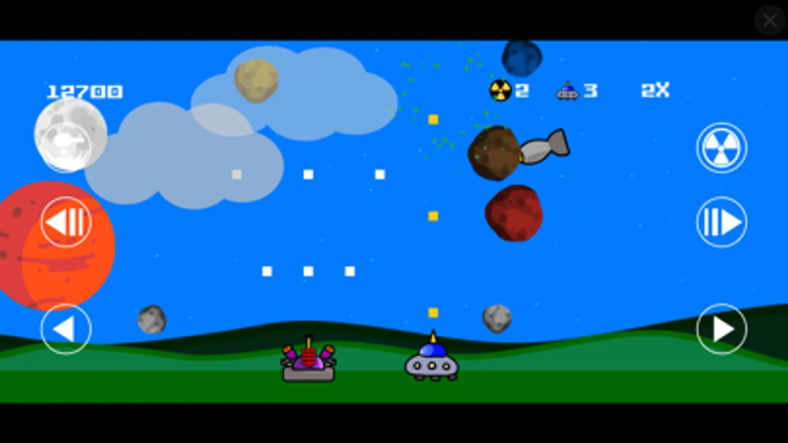 You're in command of a battery of laser guns with unlimited ammo and a lot of targets! You can roll up big scores by hitting a spectacular barrage of falling rocks, bombs, missiles and attacking UFOs. Play endless single player match and compare your score with other players, engage in a cooperative online multiplayer match with a friend.