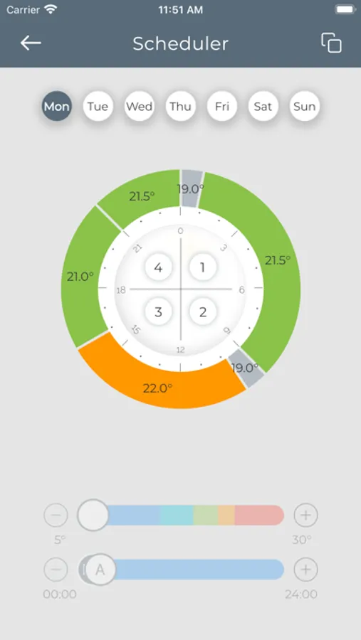 Scopri come è facile impostare le funzioni di cronotermostato per ogni giorno della settimana, ottimizzando i tempi di accensione e spegnimento in qualsiasi momento della giornata in modo da risparmiare sulle spese per il riscaldamento, e come è facile capire quando e quanto caldo desideri.
