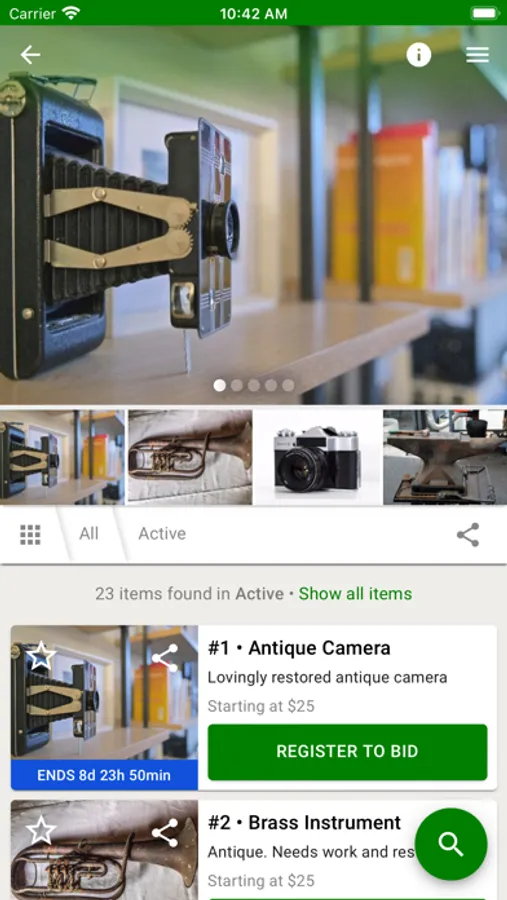 This dynamic app allows you to (1) stay informed about our upcoming auctions; (2) view items that interest you; (3) get notifications when you've been outbid; (4) bid no matter where you are located (or set and forget your maximum bid to let our platform automatically bid the lowest possible winning bid for you). This is the go-to-source for up-to-the-minute information on all of our auctions.