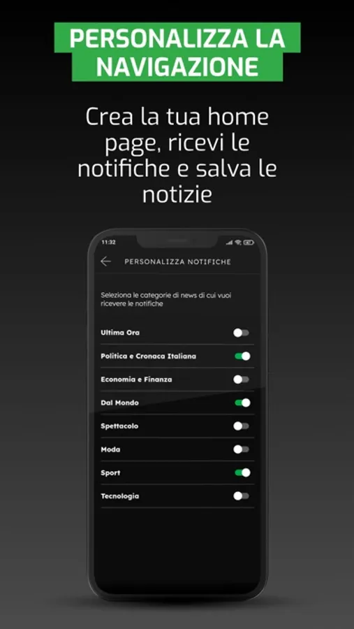ricevere notifiche push delle notizie più importanti scegliendo tra una selezione di categorie,