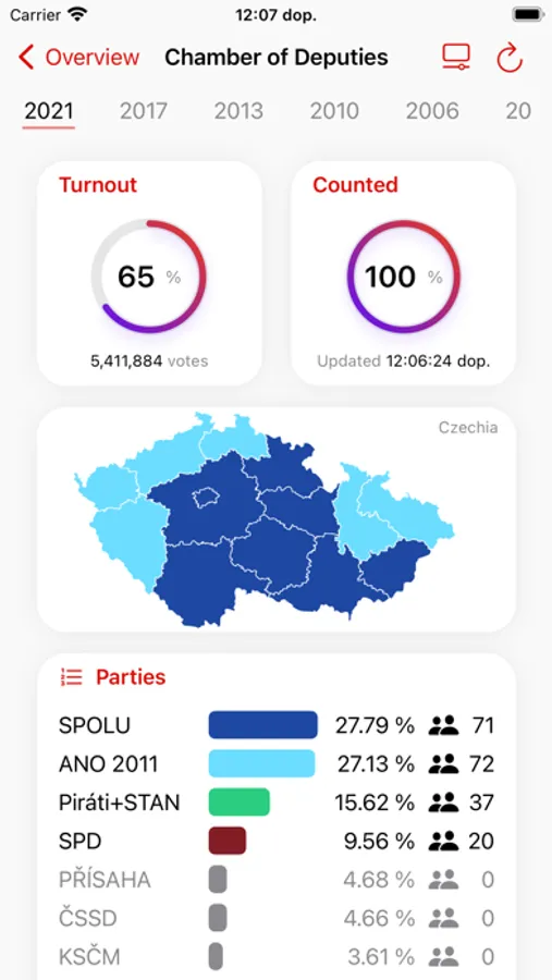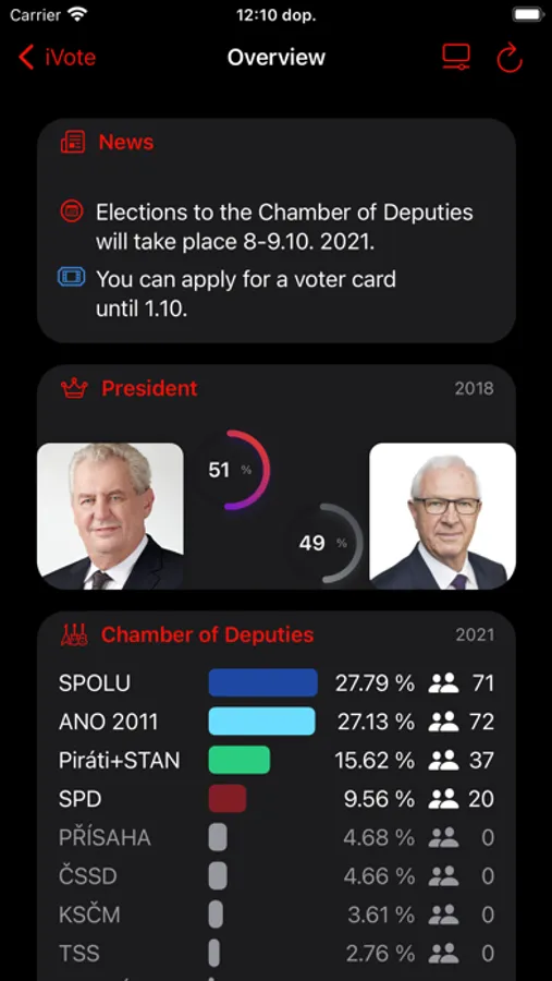 iVote offers interactive results of Czech elections since 2004. Do you want to know who won elections in your region in 2013? Who received the most preferential votes? You can find out with 3 clicks. You can watch results of your favorite politicians and parties throughout the time. That in modern GUI and animations in your pocket!