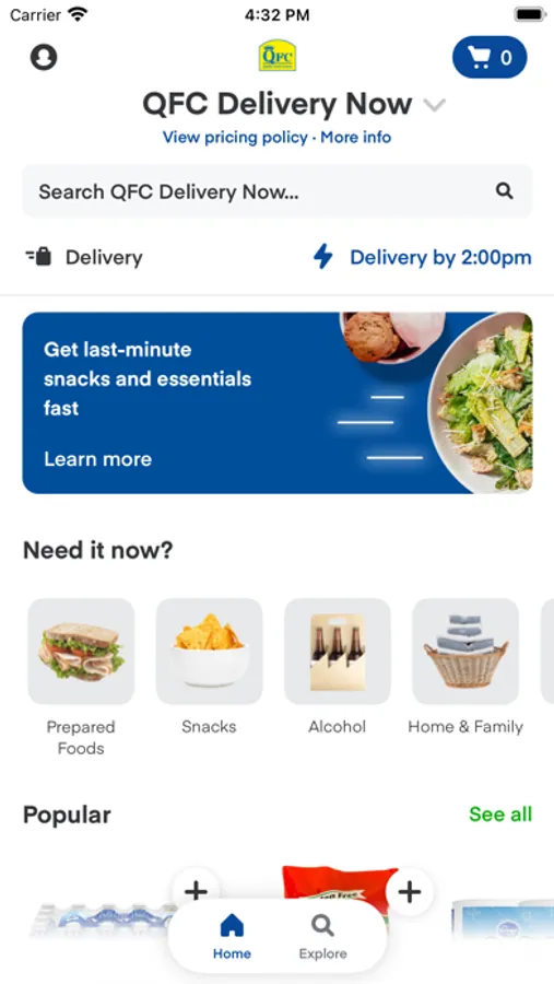 Delivery Now puts quality, convenience, and speed right at your fingertips. Simply download the app and create an account to receive essentials in as little as 30 minutes. We offer delivery from your mobile device to your front door, all from your trusted local QFC.