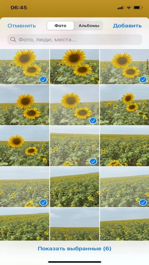 - Выберите фотографии на Вашем смартфоне в галерее