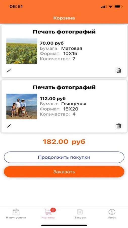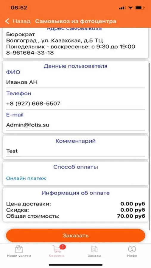 - Получите и оплатите в фотоцентре или с курьером готовый заказ