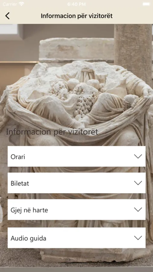 The first floor contains few prehistoric elements while the vast majority belongs to the Hellenistic and Roman period. Over 2000 objects are exhibited in chronological order on this floor. The second floor is expected to exhibit periods from late antiquity, the medieval period and the Ottoman period. All the objects exhibited in the museum have been found in and around the city of Durres.