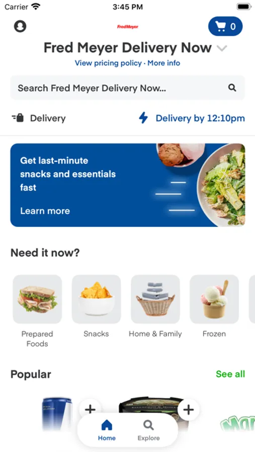 Delivery Now puts quality, convenience, and speed right at your fingertips. Simply download the app and create an account to receive essentials in as little as 30 minutes. We offer delivery from your mobile device to your front door, all from your trusted local Fred Meyer.