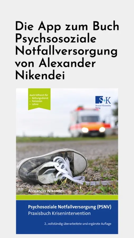 Diese App ergänzt das Buch „Psychosoziale Notfallversorgung (PSNV) – Praxisbuch Krisenintervention“ von Alexander Nikendei.