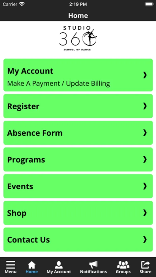 The Studio 360 Dance app allows you to manage your account with ease, register for classes, birthday parties, and special events. You'll also receive important notifications about class changes, closings, registration openings, special announcements, and upcoming events.