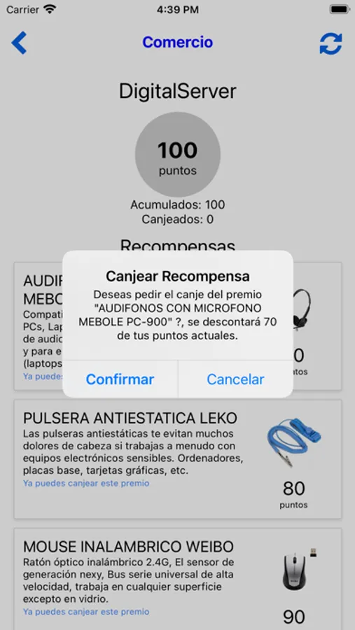 Podrás ver los puntos que vas acumulando y las recompensas que puedes canjear solicitándolas desde la app.