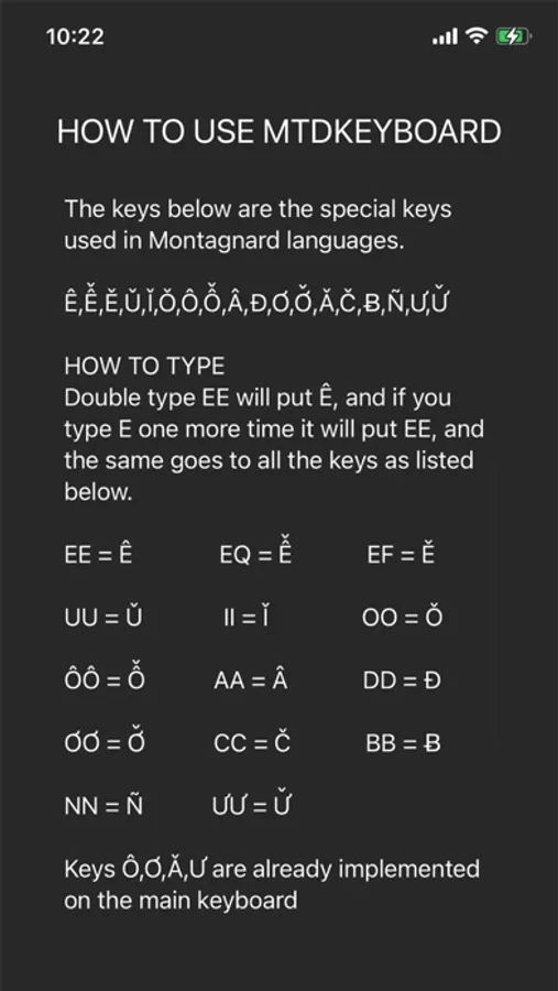 MtdKeyboard is an iOS app for typing Montagnards languages in Unicode encoding for Iphone and Ipad.