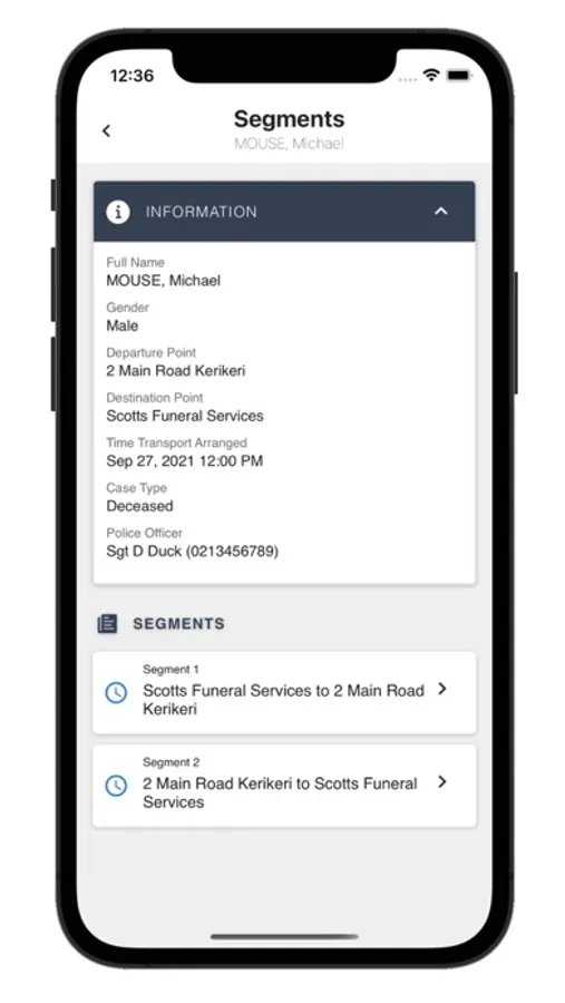 The app allows for the effective distribution of Coronial case-related information between NIIO and Coronial Transport Providers, as well as the capture of case related transport data.
