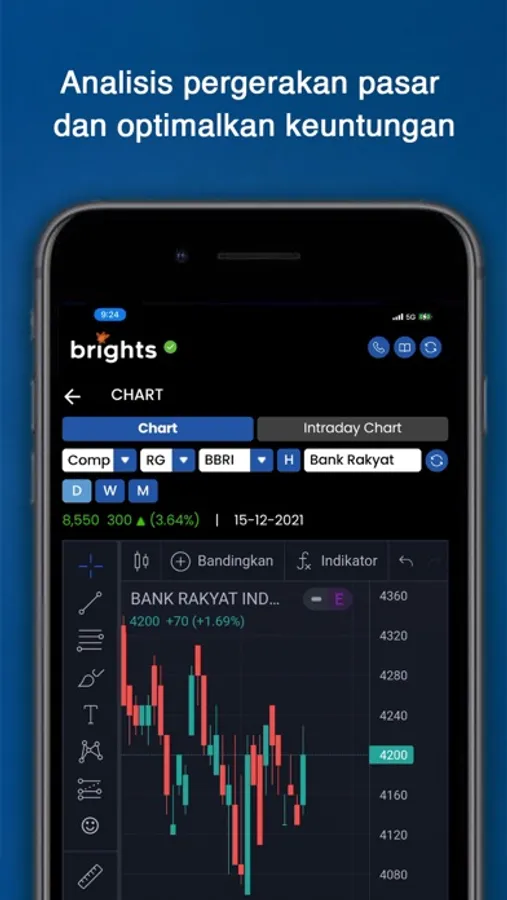 Even better, BRIGHTS is equipped with the most comprehensive and sophisticated trading indicators, which features of real time charting, customizable indicators, and various technical analysis.
