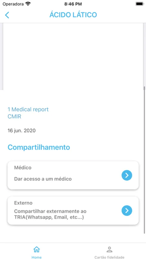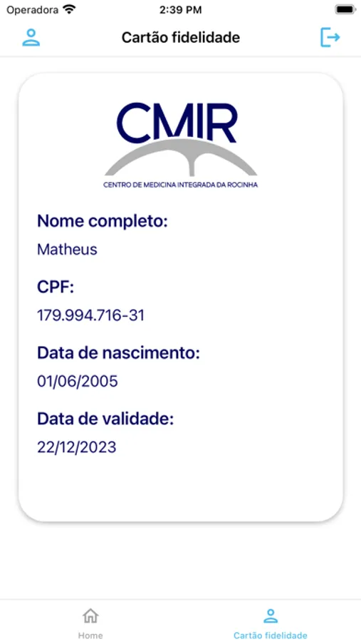 Aplicativo para receber os exames feitos na clínica do CMIR e ter o cartão fidelidade da clínica de forma digital