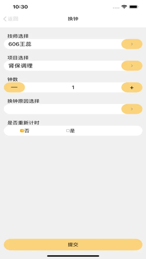 技师上钟、下钟、加钟、换钟、退钟、取消待钟操作客户端。