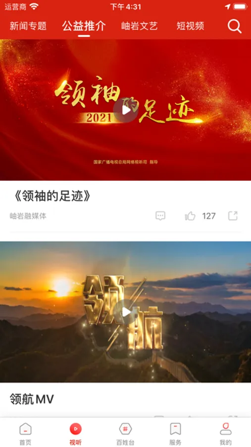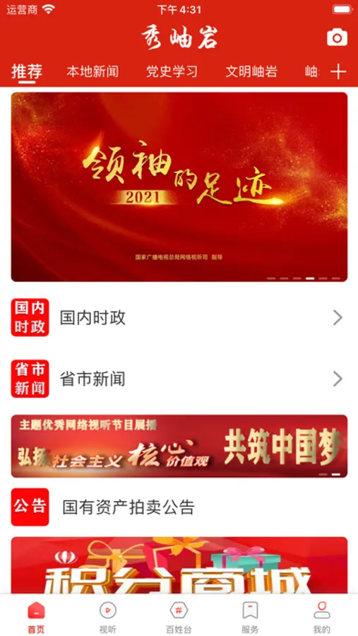 岫岩融媒APP是由岫岩满族自治县融媒体中心管理运营的新闻客户端,其功能除了进行广播电视的实时播放和直播外,还包括“互联网+新闻”、“互联网+政务”“互联网+服务”“互联网+民生”“互联网+商业”等内容。其中新闻频道整合中央、省市、本地以及网络媒体资源,推出文、图、影、音融合的资讯内容;政务频道设置“掌上政务”模块,打造政务矩阵,实现网上办公;服务频道通过“智慧社区”“监督平台”“行风热线”“不吐不快”等模块为群众提供便民服务和诉求平台,同时,叠加“出行助手”和“生活百科”等内容,实现查询、购物多项功能;此外还开设了“智慧党建”“文明实践”等特色版块,打造全民参与、全面分享、全民受益”的区域第一移动门户。