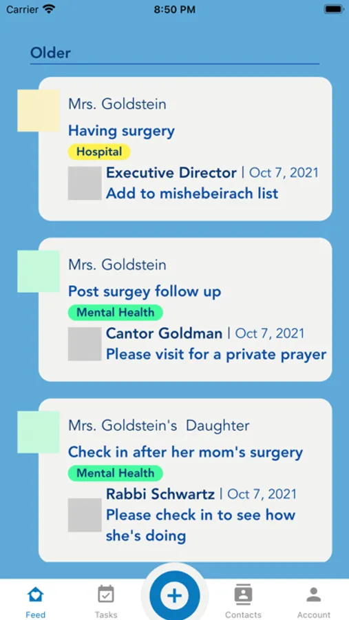 A simple application to track all the pastoral care needs for your church, synagogue, or client caring organization.