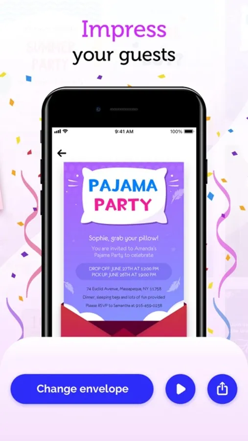 Some features may be available with a subscription only: access to all templates, animation of all cards and unlimited sending of invitations.