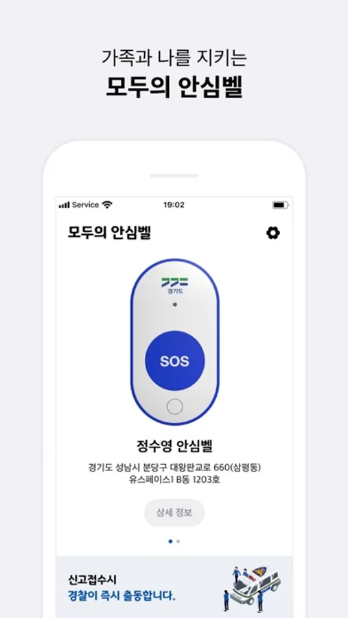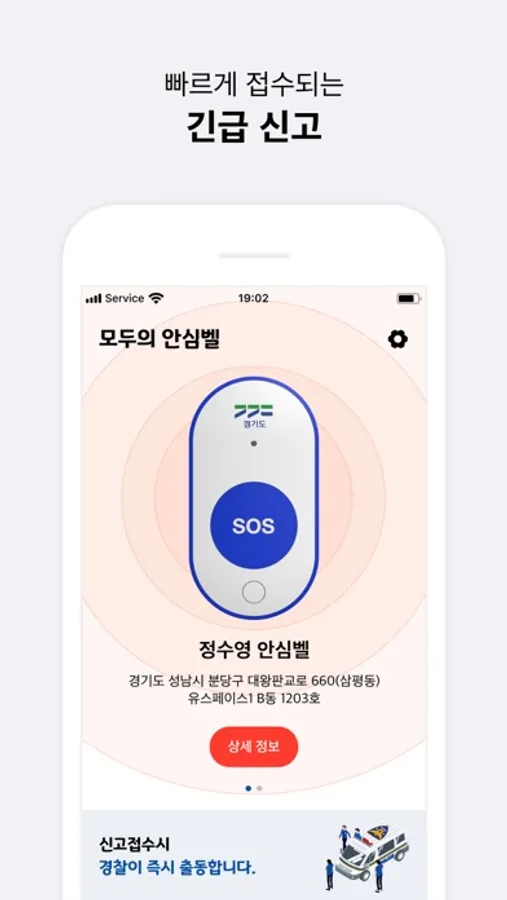 안심벨을 누르면 신고자의 위치로 경찰이 출동합니다.