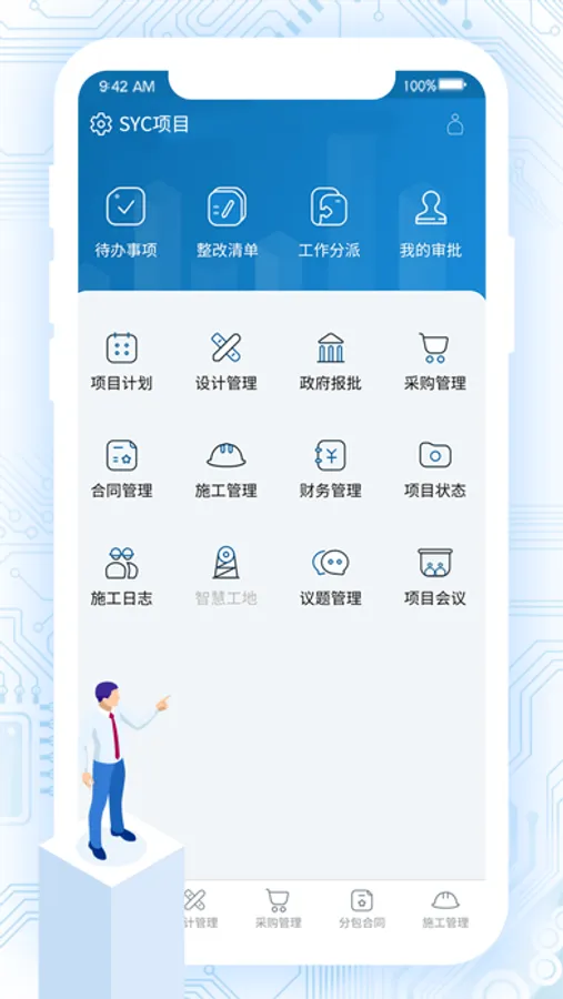 SYC项目管理平台,由赢时空科技提供,用于管理工程项目,真正实现工程项目数字化,标准化,让业主方,管理方,设计院,施工承包商,供应商在同一个平台协同工作,提高项目管理效率,节省管理成本。