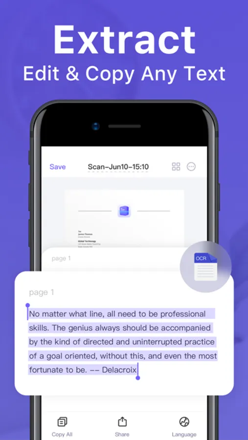 Scanner App transforms your iPhone and iPad into portable scanners,built-in OCR allows you to convert any scan into a text that can be copied.Helps you become more productive in your work and daily life.