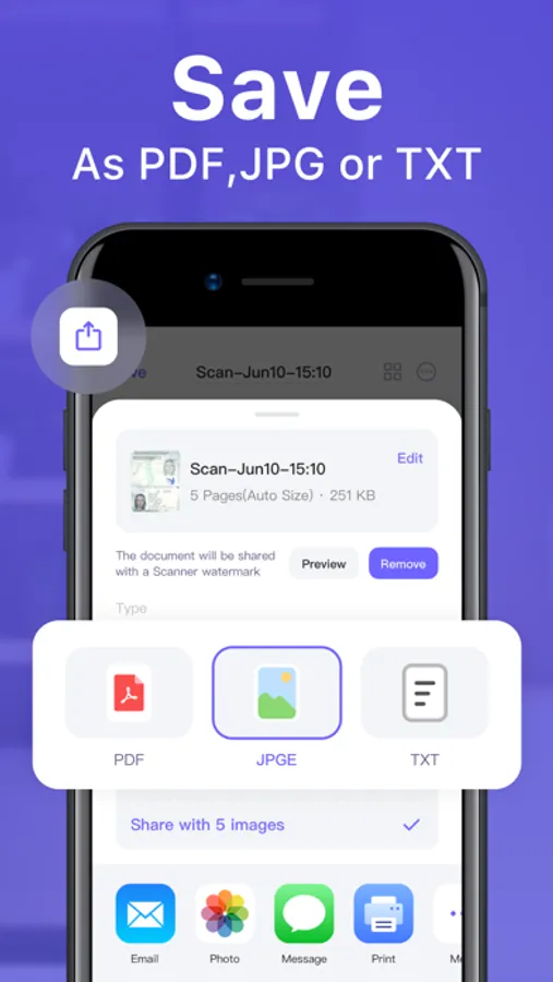 - Easily scan your documents, receipts, photos, business cards, and more on the go, and save them as multi-page, high-quality PDF, JPEG, or TXT files.