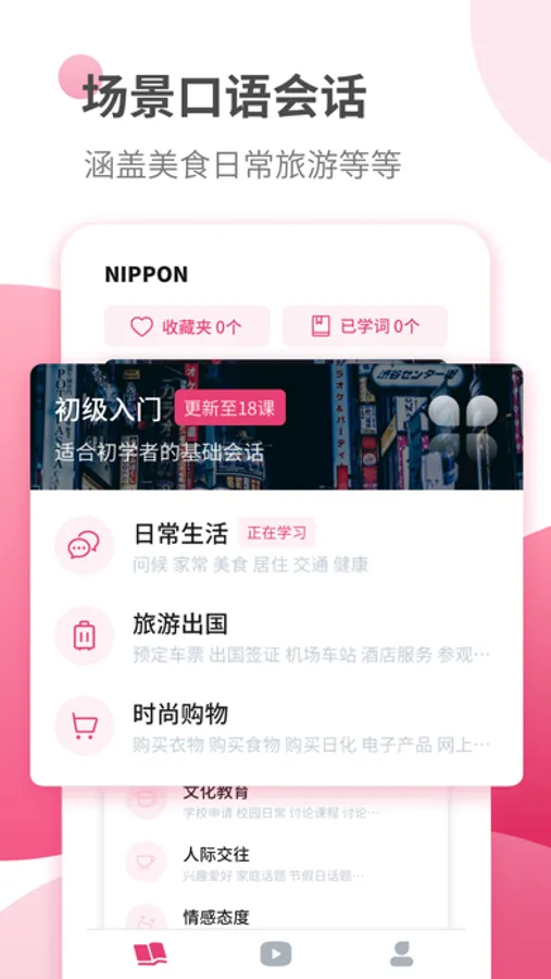 精心制作,真人日本语配音,给你感受不一样的新概念日语!日常日文口语,有趣的日语学习教程!特制动漫日语100句,日文学习日语单词大师!让你无缝融入日本村,感受樱花之国!