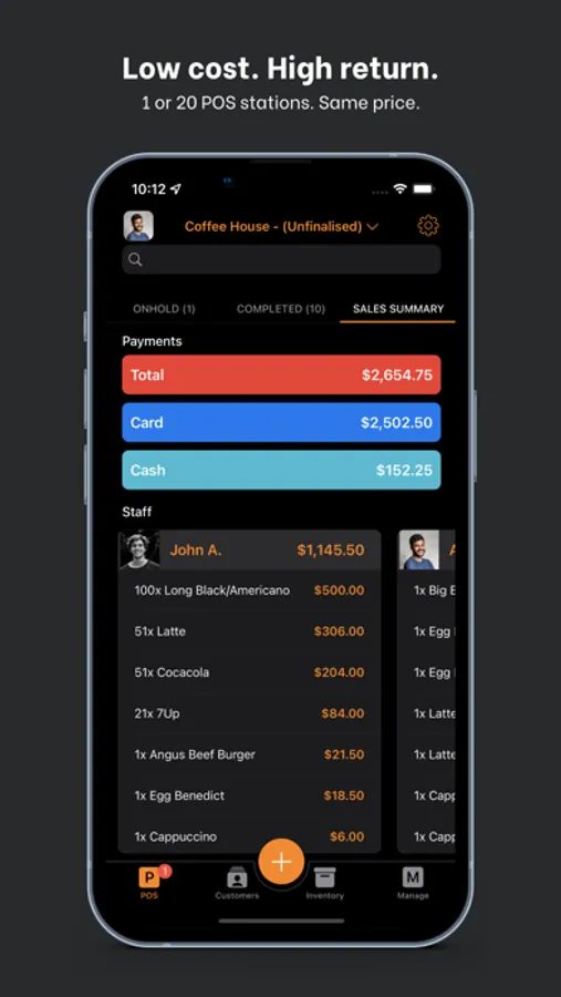 4. Very low cost: We don't charge per POS station (per device) like all other POS systems, with Thursday Restaurant you may have 1 POS, or 20 POS Stations (where you make sales, or orders) at the same price.
