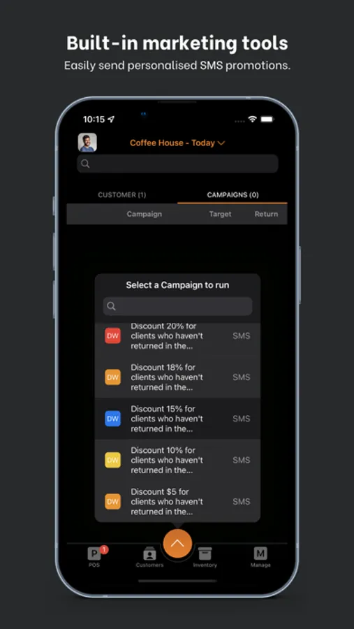 5. Built-in marketing tool: Send personalised SMS promotions easily with Thursday Restaurant. Even better you can do it anytime, any where with your iPhone.