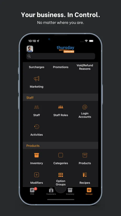 Thursday Restaurant streamlines orders, payments, and communication between front and back of the house so that you can focus on serving your customers perfect food and beverages.