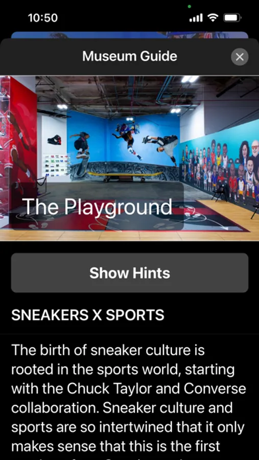 Point your iPhone or iPad camera at murals to reveal more information and inspiration from the stories of sneaker culture creators. Even if you are not in the museum, you can click on the museum guide to learn more about each scene and view hints for finding stories. You also can curate your own scenes from the museum to create your own unique mixed-reality photo ops.