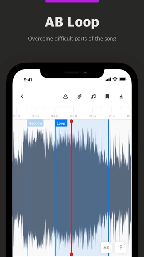 * AB Loop Playback: Set the starting point and end point of the audio, and keep playing AB loop constantly.