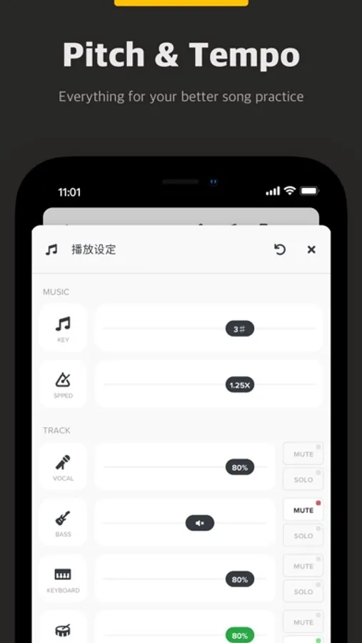 AI accompaniment to extract instrument tracks, AB loop clips, adjust tempo and pitch... Pick up the score and practice songs more efficiently.