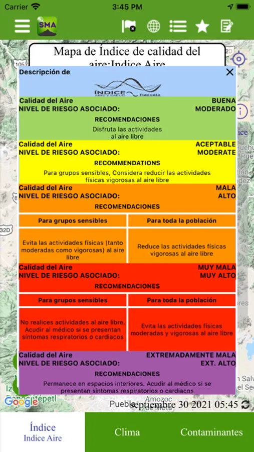 Environmental Ministry of the Tlaxcala state provides a platform based on the law NOM-172-SEMARNAT-2019, the information obtained from the Stations operated by the State Air Quality Monitoring Network can be consulted there, the stations are located in the principal Cities of Tlaxcala state such Apizaco, Huamantla and Calpulalpan.