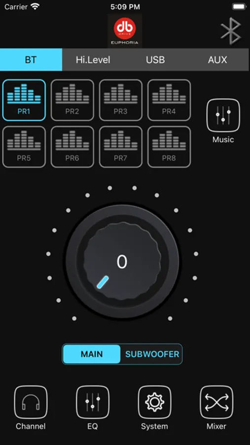 一个便捷专业的调音APP,蓝牙连接,内置8种音效模式,31段EQ调节。让您有不一样的听觉享受。播放器界面,支持U盘播放。