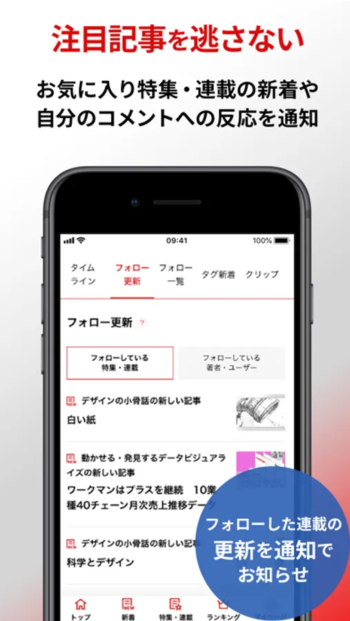 (2)気になった連載や著者をフォロー登録しておくことで、連載が更新された際にはトップページで通知を受けられます。