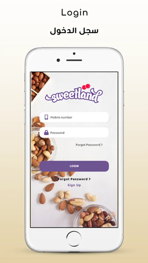 تطبيق للطلب الحلويات والمكسرات مع خدمه التوصيل الي المنازل.