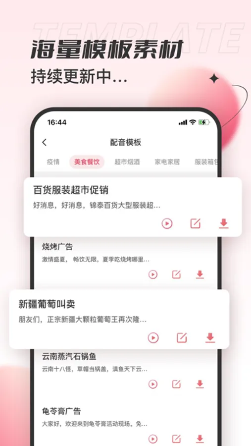 多种示例模板:广告促销,广播,商场优惠宣传等等,模板套用更方便