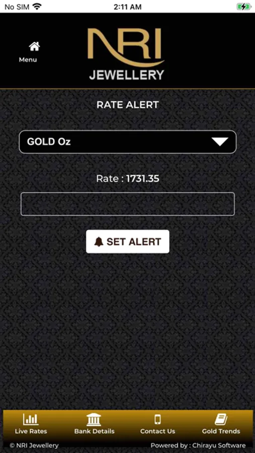 It also has the RATE ALERT facility to set the alerts at a specific price and receive a notification when the market price reaches the specified price level.