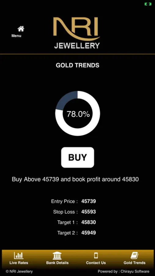 The app has a special feature of predicting GOLD TREND using various analysis tools.