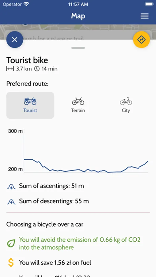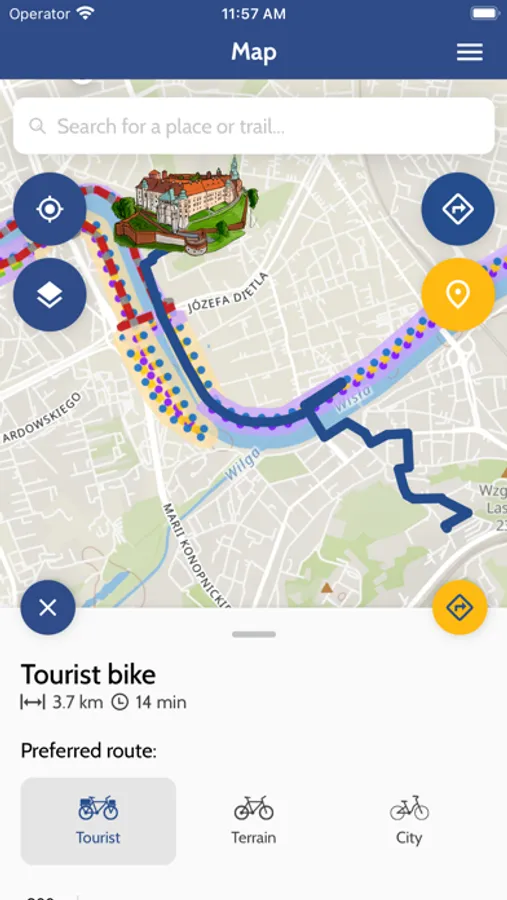Cycling Małopolska is a map application combining a website and a mobile app for cycling enthusiasts. The route planner has three available modes: tourist, urban and off-road with voice directions in the mobile app. The app also provides the altitude profile and makes it possible to save and share your routes with other users, and to download the gpx track. The map includes the key points of interest along with descriptions and photographs, as well as cyclist-friendly points and tourist attractions. The background map includes the main cycling routes in the Małopolska Region (Velo Małopolska), as well as suggested routes for cycling trips around the region. The app will also tell you how many calories you would burn by choosing the specific route, how much car fuel you would save and how you could reduce your carbon footprint by choosing this environmentally friendly mode of transport. The project was implemented with the funding of the Małopolskie Voivodeship.